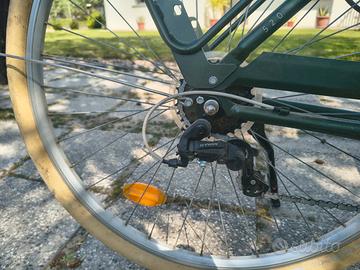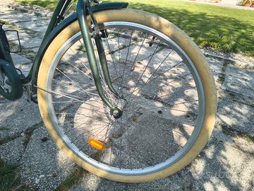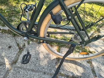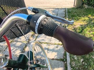 Bicicletta da città telaio alto, adatta per persone con altezza da 1,60 a 1,75mt. Ruote 28" in alluminio peso circa 19kg manubrio stile olandese luci integrate trasmissione con deragliatore con gabbia a 6 velocità, guarnitura a 40 denti impugnatura girevole a 6 velocità cavalletto laterale rinforzato portapacchi posteriore peso massimo 27kg: compatibile con seggiolino per bambino il portaborraccia è un extra ma lo regalo già montato!
