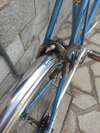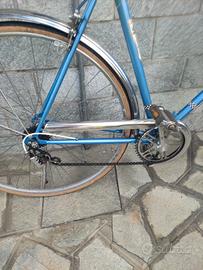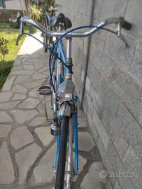 bicicletta da città con telaio in acciaio colore azzurro metallizzato - cambio 6 marce- ruota 28 - freni a pattino. è ferma da un po' di tempo ma è in buone condizioni.