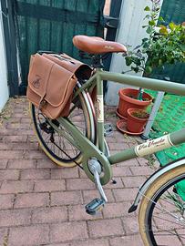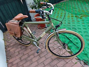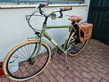 vendo per inutilizzo splendida bicicletta da uomo Via Veneto by Cannellini RETRÒ Alluminio con borse - verde oliva • telaio 54 cm • ruota 28 pollici (700x35) • Leva del cambio Shimano grip shift o velocita • Posizione del cambio Shimano TX50 6 velocita • Freno V brake in alluminio • Manubrio in alluminio regoiabile • Guarnitura in alluminio • Luci anteriori e posteriori a batteria • Portapocchi posteriore omologato per seggiolino • Borse laterali in Pelle come nuova ritiro a mano, disponibile a qualsiasi prova astenersi perditempo e sognatori