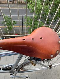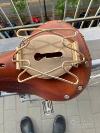 Vendo bicicletta CIGNO mod. Lusso con manopole e sella Brooks in pelle, utilizzata solo una volta per passeggiata in citta'. Tutta originale, compreso portagiornale e lucchetto vintage marca cigno.