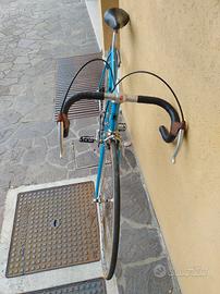 Bicicletta da corsa del 1978 marchio Rossi, artigiano di Vicenza. Telaio acciaio Columbus, montato interamente Campagnolo Nuovo Record, cerchi Nisi con tubolari, sella cuoio Cinelli, manubrio 3T. Originale in tutto. Io sono alto 1,74 .Eventuali scarpette in pelle e cuoio Diadora numero 41 + gabbietta originale da integrare ai pedali. Perfetta per Eroica o corse similari.