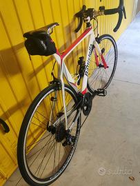 Bicicletta in carbonio di alta qualità artigianale. Ideale per altezze da 175 a 180 (sono alto 178). Cambio meccanico Shimano 105 da 11 velocità con cassetta 11/34 e guarnitura 36/52 ideale per le salite. Ottima per chi volesse iniziare a pedalare, bici leggera pur avendo i cerchi in alluminio, copertoni nuovi. La bicicletta viene venduta senza pedali e con una sella diversa da quella delle fotografie.