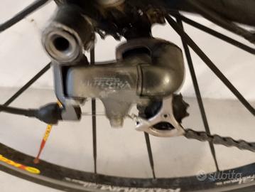 per motivi di spazio, vendo con dispiacere bicicletta Grandis con telaio in alluminio, forcella e carro in carbonio. cambio Ultegra 10 velocità. Attacchi Look. Attualmente monta copertoncini "rinforzati" che ho messo quest'anno per fare strade bianche. Ho anche i copertoncini da strada nuovi. bicicletta sempre revisionata da Grandis. Bicicletta regolarmente usata per giri di 50-70km. Sulla canna c'è una fessura, visionata da Grandis, valutata come innocua e coperta con adesivo in linea con verniciatura bicicletta. La sella non è quella sulla bici ma quella in ultima foto