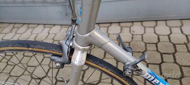 Vendo bicicletta da corsa con telaio in lega d'alluminio ALAN. Tubo orizzontale 57 cm. Cambio posteriore Shimano 600 7v sincronizzato, cambio anteriore Campagnolo 2v, manubrio Cinelli, cerchi Mavic a sgancio rapido con tubolari ancora buoni. Ne ho anche un altro semi nuovo. Pedivelle e cannotto sella Campagnolo, pedali con attacchi. Bici leggerissima e molto scorrevole. È una Alan bike. Vendo euro 230,00. Non spedisco