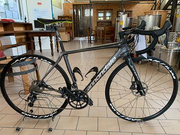 Bicicletta da corsa in carbonio Cannodale. Tg. 50 pari al nuovo mai usata. Telaio Sloop Monta gruppo Shimano Ultegra 50/34. Rapporti 28/11 . Ruote Mavic Axium , freni a disco e completa di Garmin Edge 520 e fascia cardio.