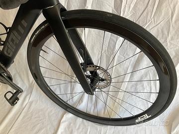 Bici da corsa Giant in carbonio modello Propel Taglia S - lunghezza cectro centro 53 Gruppo Shimano _ultegra 11 velocità Di2 elettronico Guarnitura 172,5 52 x 36 Ruota libera 11 x 28 Pedali Look Keo Sella Italia SLR Boost Attacco manubrio 120 Manubrio 40 centro centro Ruote tcp in carbonio Rubino Prò