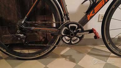 Vendo per passaggio a biciclette da gravel Kemo Kr-5 taglia 58 con gruppo Shimano Ultegra 10v, pedivella FSA 52x39, ruote cosmic sl carbon con pista frenante in alluminio, sella prologo. La bicicletta è pronta all'uso revisionata e perfettamente funzionante. La bicicletta è in ottimo stato. Disponibile a visione. Prezzo trattabile