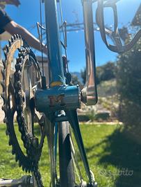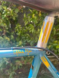 Bici da corsa Masi Prestige indicativamente primi anni ottanta, cambio posteriore Campagnolo 6 velocità, deragliatore Campagnolo corona 53-42, reggi sella in alluminio Campagnolo, attacco manubrio in alluminio 3 t serigrafato Alberto Masi, piega manubrio in alluminio Campagnolo, freni Campagnolo, pedivelle Campagnolo, lunghezza 170, ruote Mavic in alluminio. Lunghezza telaio: tubo orizzontale 54,5 cm. Stato conservato. Disponibile altra bicicletta identica in taglia 57.