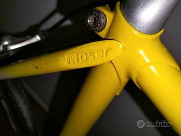 Vendesi bicicletta da corsa telaio in acciaio, freni e cambio Campagnolo a 8 velocità, modello Moser descrizione come da foto misure: sotto sella/centro manubrio 55cm. - sotto sella/movimento centrale 55cm. prezzo fatelo voi