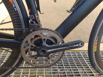Vendo come da titolo BDC modello specialized venge replica, telaio in carbonio di produzione coreana molto robusto e solido non ufficiale. Freni a pattini, cambio meccanico 11 velocità. La bici è montata tutta campagnolo super record. Guarnitura in carbonio campagnolo record 52x36 pacco pignoni miche 12x29. ruote mavic cosmic slr profilo in carbonio da 50. manubrio aero in carbonio. la bici pesa pochissimo, meno di 7,5 kg. Catena, corone e pignoni hanno all'attivo pochissima strada, meno di 1000 km, mentre il nastro manubrio, i pattini freno posteriori, ed i copertoncini Continental ultra spot da 23 sono nuovi da negozio!. La vendo solo per passaggio a BDC con freni a disco più attinente alla salita. Dispongo anche di guarnitura campagnolo chorus 53x39 e pacco pignoni 11x25. La vendo così come la vedete con doppio porta borracce senza pedali. La bicicletta in origine era bianca e azzurra di un team di ciclisti prof. è stata riverniciata nero opaco dal precedente proprietario. dispongo di fotografia.