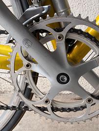 Bici da corsa x persona alta 1.60. il canotto reggisella è bloccato nella sua sede e non si toglie probabilmente a causa di ossidazione. La distanza dal piano sella al pedale a sgancio rapido è di circa 80 cm