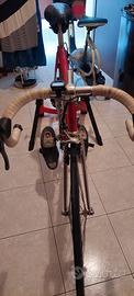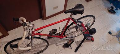 Vendo bicicletta da corsa cambio a canna Shimano 600 Rapporti anteriore 52 e 42; posteriore 7 rapporti da 14 a 28. La bicicletta è adatta per persona alta da 170 a 180 cm. . Ruote con copertoncini. Con la bici sono compresi i rulli per allenamento, 2 paia di scarpe e alcuni oggetti di abbigliamento tecnico. Ritiro solo a Pioltello, no spedizione.