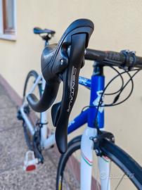 Bici da corsa Mondial telaio acciaio, gruppo campagnolo centaur 11 rapporti 12-32,ruote Ambrosio, guarnitura compact 50-34, misura centro-fine 55x56,pipa 120 mm reparto corse,manubrio ITM. Telaio appena riverniciato.