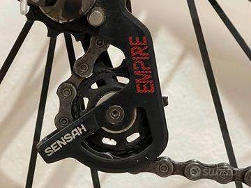 Bicicletta da corsa carbonio . NO BRAND ovvero fatta da un artigiano .11 rapporti cambio EMPIRE SENSAH. Taglia telaio L . Per le misure vedere foto . Copertoni nuovi . NO freni a disco . Ottimo stato .Ritiro in zona .