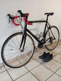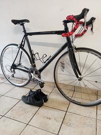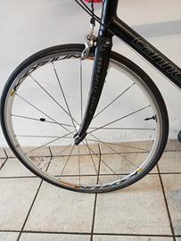 bici da corsa cannondale CAD.9 taglia XL, freni e cambio Shimano 10 rapporti Ultegra, copertoni Continental gran sport race, cerchioni mavic ksyrium elite, sella gel flow techenologic, forcella e manubrio in carbonio, con scarpe taglia 46 nuove ,completa di contachilometri usata solo una volta sia bici che scarpe si può notare anche dai km sul contachilometri sono disponibile per domande e più foto, prezzo trattabile.