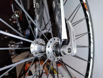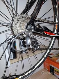 Vendo bici da corsa NSR nuzzi sport in taglia M/L 54 completa carbonio montata Ultegra, deragliatore, leve, freni, e guarnitura bici perfetta usata pochissimo ferma da un annetto. Come nuova. Oltre quanto in foto. Pipa più lunga sempre in carbonio e cassa pacco pignoni.
