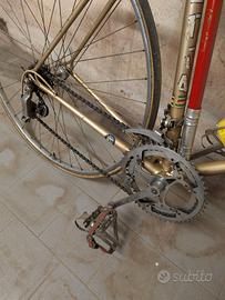 Telaio in acciaio con congiunzioni, geometrie classiche da corsa, verniciatura originale.