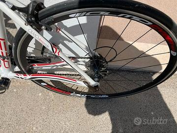 Telaio in alluminio, forcella in carbonio, cambio campagnolo 10 velocità guarnitura anteriore 50/34. Marca OLMO.