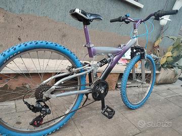 Vendo bicicletta "fuoristrada" completamente revisionata e perfettamente funzionante. Colori personalizzati, cerchi in alluminio da 26 ", freni potenti tipo V-brake, ammortizzatori davanti e dietro, copertoni scolpiti. Cambio a 21 rapporti. I fanalini LED, il cavalletto e il campanello sono tutti nuovissimi. Bicicletta molto robusta scorrevole ed equilibrata adatta fino ai 13-14 anni. Soddisfatti o rimborsati assistenza e riparazioni gratuite per il primo mese. Zona Fiera Portello Stanga.