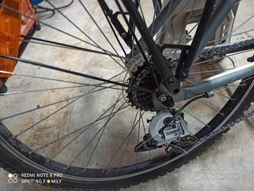 Bicicletta da donna city bike o trekking , molto comoda la seduta e la posizione di guida, manubrio regolabile in altezza e angolazione , ruote da 26, cambio Shimano a 21 velocità , compreso nel prezzo seggiolino posteriore per bambini con apposito portapacchi preso al dechatlon insieme alla bicicletta, e' facilmente posizionabile e rimovibile grazie ad un attacco rapido e dotato di cinghie di sicurezza, poggia piedi regolabile in altezza. Regalo seggiolino anteriore per bambini più piccoli. I due seggiolini hanno le istruzioni a corredo. Disponibile per altre informazioni