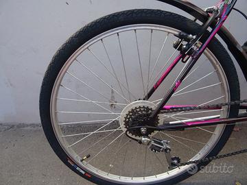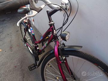 Bicicletta sportiva da donna, con gomme e camere d'aria nuove, cambio anteriore e posteriore e tutti gli accessori nuovi : parafanghi , luce anteriore e posteriore, campanello e cavalletto.