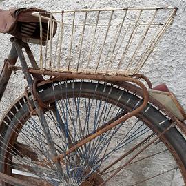 Portapacchi posteriore a gabbia in filo metallico, caratteristico delle biciclette utilitarie dell’epoca.