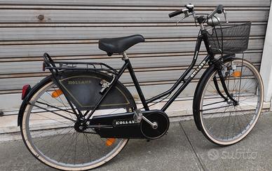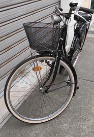 Vendo bicicletta da donna holland nera con ruota del 26. Totalmente revisionata, si presenta completa di cestino, portapacchi posteriore, cavalletto e campanello compresi nel prezzo.