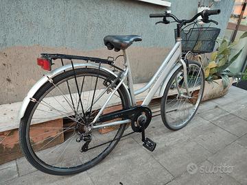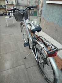 Vendo bicicletta completamente revisionata e perfettamente funzionante. Cerchi in alluminio da 28 ", cambio a 7 rapporti, cestino anteriore e portapacchi posteriore a molla con catarifrangente, cavalletto. Freni potenti tipo V-brake. I fanalini LED e il campanello sono nuovissimi. Bicicletta molto leggera scorrevole ed equilibrata. Soddisfatti o rimborsati assistenza e riparazioni gratuite per il primo mese. Zona Fiera Portello Stanga.