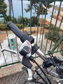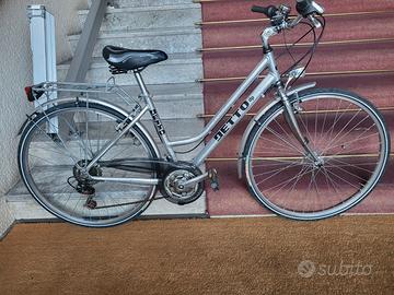 Bella bicicletta da donna in alluminio con cambio al manubrio, 3 corone anteriori e 7 posteriori per un totale di 21 rapporti. Ottima da utilizzare in piano ma anche per fare salite medie.