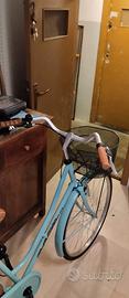 Bicicletta da donna nuova,quasi mai usata, perfettamente funzionante,con cestello anteriore e portapacchi posteriore,luce anteriore e catarifrangente posteriore . Possibilità di regalo catena spessa e resistente con lucchetto altrettanto resistente