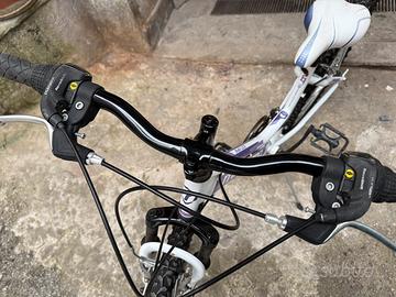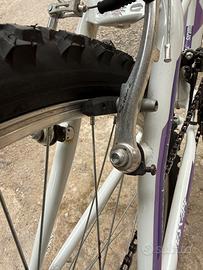 Bicicletta femminile taglia 24 in perfette condizioni , pneumatici nuovi e freni nuovi sia all’anteriore che al posteriore , mace sia anteriori che posteriori funzionanti al 100% catena nuova , soltanto un piccolo segno di ruggine sulla forcella come dalla foto , prezzo trattabile