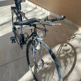 Vendo bici da passeggio 28” Hazard anno 2002 , taglia M, cambio Shimano 24 velocità, freni meccanici. La bici è dotata di faro anteriore, catena antifurto e cavalletto. Regalo ciclo-computer, occhiali, pompa, borraccia, sacca sottosella, guanti e completo uomo nuovo Tg 48/50, come da foto. Copertoni in ottimo stato. Adatta per cicloturismo, spostamenti urbani. La Bicicletta è revisionata, molto ben tenuta (sempre in cantina) e non necessita di alcun intervento.