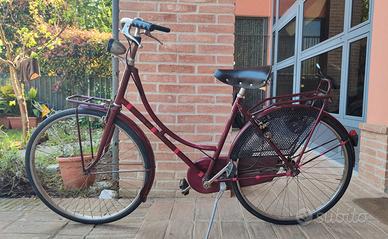 Bici da passeggio da donna marca Holland, colore amaranto. Revisionata; sostitute le camere d'aria, freni buoni, fanale con dinamo, in buone condizioni estetiche. Portapacchi anteriore e posteriore. Posso consegnare in città e limitrofi.