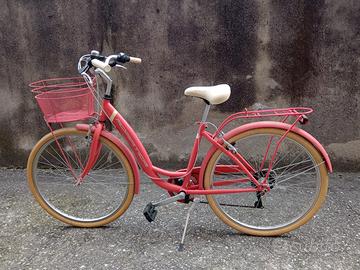 Bicicletta da ragazza in stile vintage, montata con componentistica shimano a 6 velocità ottima per i vostri giri quotidiani, con cestino davanti e porta oggetti a molla dietro. Usata pochissime volte, senza graffi.