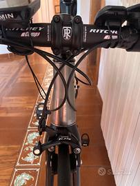 Bici da competizione in carbonio/titanio Dedacciai, fatta a mano, tg. M, altezza massima del ciclista 175 cm. Cassetta shimano 105 10v cambio 11. Corona shimano Dura Ace SG 50f, Xorona shimano SGX 10S 34, Manubrio Ritchey double buffer 6061, Sella Forza 4ZA Cirrus Pro in carbonio 145 mm bianco/nero. Disponibile anche Rullo Tacx Boost trainer bundle e scarpe Triathlon van rysel tg. 42