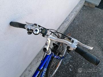 Telaio interamente in alluminio, verniciato con un bellissimo Blu elettrico, manubrio originale sempre in alluminio di tipo turistico, cambio e leveraggi Shimano Nexave, 8 rapporti ( 11-13-15-17-20-23-26-34 ) e 3 corone ( 28-38-48 )