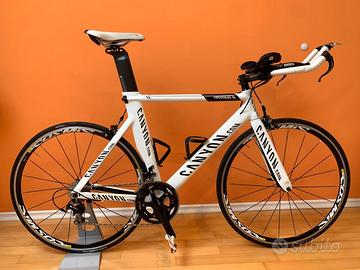 Vendo bicicletta da triathlon/TT Canyon Speedmax AL 8.0 con cerchi originali Mavic Cosmic Elite e telaio in alluminio.