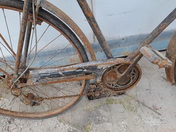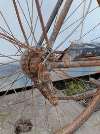 Vendo antica bicicletta con freni a bacchetta , da restaurare , con vecchio cambio , non conosco la marca. Spedisco in tutta Italia con 25,00 euro (spedizione tracciabile) INFO 339 7818180