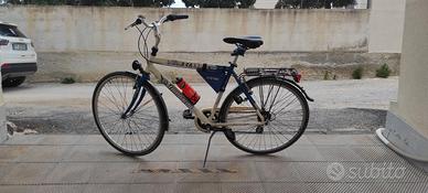 Vendo graziosa bicicletta da città per uomo modello Viseki 250 bye Lombardo, equipaggiata con cambio a rotazione Shimano che garantisce affidabilità sia nei percorsi urbani che extraurbani. La bici include: parafanghi anteriori e posteriori; portapacchi posteriore; luci anteriore e posteriore; Carter copricatena parziale; porta borraccia integrato con borraccia arancione in dotazione; borsello da telaio triangolare blu. Prezzo davvero interessante condizioni discrete si nota un leggero scolorimento sul telaio superiore e sul Carter Ma ciò non influisce sullo stato di efficienza della bici.