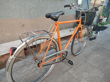 Vendo bicicletta da uomo completamente revisionata, ridipinta e perfettamente funzionante. Ruote da 28', cavalletto, portapacchi posteriore a molla. Il cestino anteriore, la sella, i pedali e i fanalini LED sono tutti nuovissimi. Bicicletta molto leggera scorrevole ed equilibrata. Soddisfatti o rimborsati assistenza e riparazioni gratuite per il primo mese. Zona Fiera Portello Stanga.