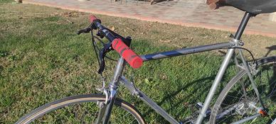 Vendo bicicletta uomo vintage metà anni 70' misura in altezza 57,5 (centro/fine) e in lunghezza 56 (centro/centro). La bici è stata restaurata una decina di anni fa con sabbiatura e cromatura. È assemblata con componenti corsa dell'epoca. Guarnitura e M.C. Ofmega 52/42 denti e pedivelle da 170 mm. Con ingranaggio esterno Campagnolo Super Record, cambio e serie sterzo Campagnolo Gran Sport. Comandi al telaio, deragliatore ant. e pedali Galli Criterium, ruota libera 6v Regina Corsa 14/26, manubrio e attacco 3ttt, sella Selle Royal, ruote con mozzi Miche e cerchi Nisi HR22 (copertoncini) e freni Universal. La bici si presenta in buone condizioni ed è perfettamente funzionante. Ingrassata e lubrificata in sede di restauro. Vendo a 260€ precisando che non spedisco. Solo scambio a mano.