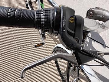 Vendo bellissima Bicicletta da uomo,eccelente funzionamento meccanico,ruote da 26" pollici,copertoni in ottimo stato,freni revisionati e nuovi,sellino Fly toon,pedaline perfette,manopole nuove,cavalletto stabile,telaio eccelente con qualche leggero graffio assolutament enon evidente,7 cambi shimano revo schift,una corona centrale. Sempre tenuta con cura in garage,mai stata all aperto. Una bicicletta dallo stile ecclettico con il suo mix di colori variegaro e fluido,adatta sia per la citta che per le piste ciclabili in terra battuta o ghiaino. Ottima per il periodo primaverile/estivo,per girare in tutta sicurezza ed eleganza. Consegna entro la provincia di padova,non padova centro, 10 euro, 15 euro per fuori provincia di padova.