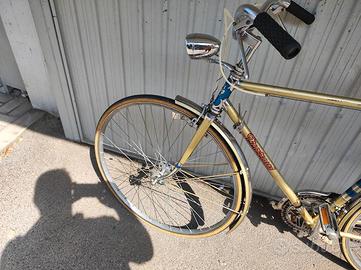 Bicicletta da uomo vintage, anni '70 vendo, rarissima. La marca è Trarovi, un venditore di Rovigo. La bici è conservata in maniera quasi impeccabile, difficile da trovarne una così. I pignoni posteriori e la catena sono stati cambiati, devono ancora essere rodati! Il cambio è perfetto, sia anteriore (con due moltipliche) che posteriore. Freni e fanali perfettamente funzionanti, cromature lucidissime e senza alcuna traccia di ruggine, così come i cerchi, foto reali. Tratto solo dopo visione di persona, astenersi prposte varie e perditempo. Non spedisco, pagamento esclusivamente in contanti. visibile zona Mirano.