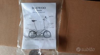 Vendo Bici pieghevole DAEWOO Shuttle nuova ancora nella scatola confezione originale, ideale per campeggio, trasporto treno , o per la città e comodamente trasportabile in auto in quanto pieghevole ed occupa poco spazio . Leggera in alluminio kg 7/8