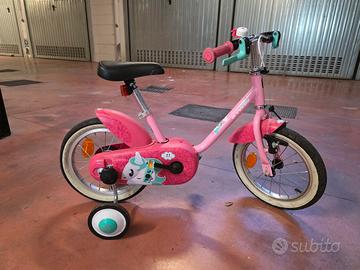 bicicletta decathlon da bambina 14" tema Unicorno. ottime condizioni, gomme e freni ok completa di rotelle si vende per passaggio a modello più grande zona La Storta