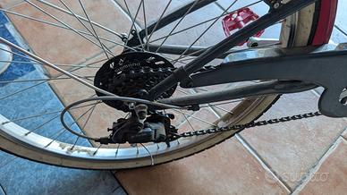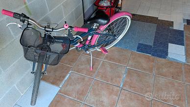 Bici in ottime condizioni, pari al nuovo, usata per poco più di 2 anni, ideale per bambini e bambine dai 9 ai 12 anni, sostituita perchè mia figlia non ci sta più. ruote ancora intatte da 24", telaio in acciaio del peso complessivo di circa 13 kg, completa di cavalletto, parafanghi anteriore e posteriore, e cestino, cambio a 6 velocità, altezza da 1.35 a 1.50, peso massimo sostenibile fino ad 80 kg. Ideale per sentieri da trekking. Tenuta maniacalmente ma con leggeri segni di usura che non ne compromettono però l'utilizzo. Disponibile a far visionare e/o mandare altre foto dimostrative, si preferisce consegna a mano. Si precisa che il bene in oggetto viene venduto come "Usato" con la formula "Visto e piaciuto" e come disciplinato dalle vigenti direttive di compravendite tra privati.