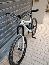 Bicicletta MTB da DOWNHILL, specializzata e progettata per discese ad alta velocità fuoristrada su terreni impegnativi. Specificamente realizzata per gestire le estreme sfide delle gare di downhill e della guida aggressiva in discesa.