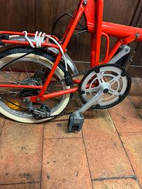 Vendo come da foto bicicletta pieghevole Di Blasi , con cambio . Dimensioni Ripiegata: 85x22x60 cm Aperta (passo): 82 cm Peso: 14,2 kg Pneumatici: 16 x 1.75 x 2 Guarnitura: in lega leggera, 52 denti - 170 mm Cambio di velocità: equipaggiamento standard: deragliatore con ruota libera a 5 pignoni (13-15-17-19-21) optional: cambio al mozzo a tre rapporti e comando a manopola Freno anteriore: ad espansione, tamburo Ø 70 mm (FRA) Freno posteriore: nella versione con deragliatore: a nastro Ø 80 mm nella versione con cambio al mozzo: a contropedale Ruote con raggi inox e cerchi in lega leggera Sellino: altezza regolabile da 84 a 98cm dal suolo Carico massimo: 100 kg