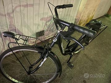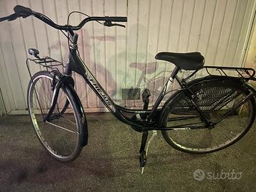 Carinissima bici da donna misura ruote 26 ,perfetta in tutto ,gomme 100%freni 100%ideale per la città ,verrà istallato il cestino al momento del ritiro che ho smontato per non rovinarlo,dotata di luci al led funzionanti .