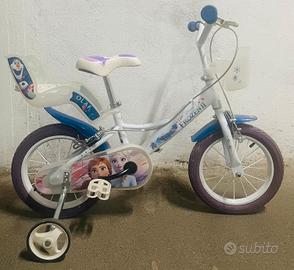 Bicicletta Dino Bikes tema Frozen. Con cestello e porta bambola Compreso di rotelle e libretto di istruzioni e chiave per montaggio Ottime condizioni adatta fino ai 6 /7 anni.